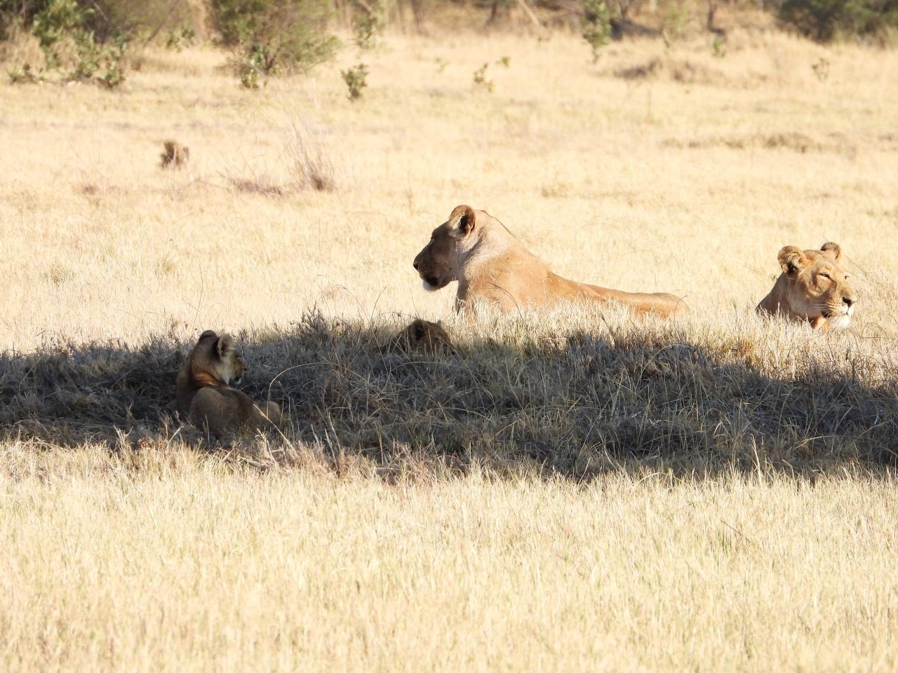 昨日、バッファローの死骸が転がっていましたが、そこでライオンが数頭いました。