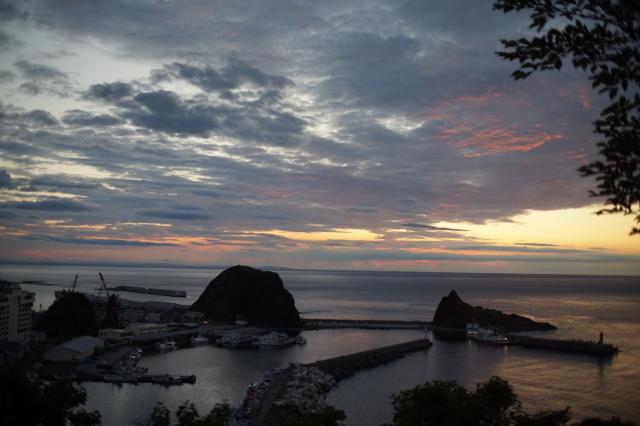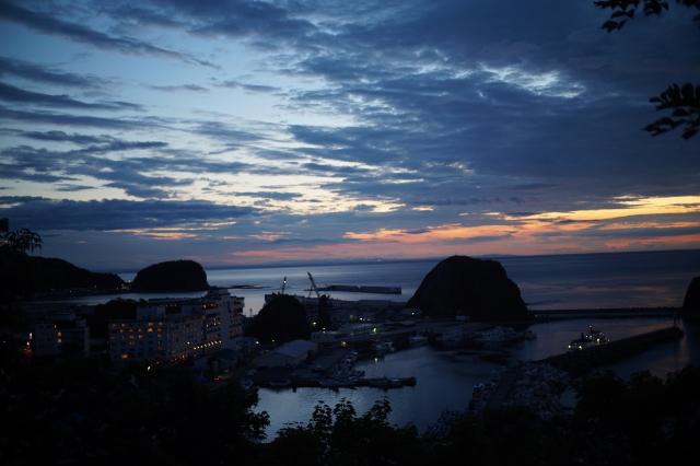 宿の近くの夕陽台からウトロ港方向を写しました