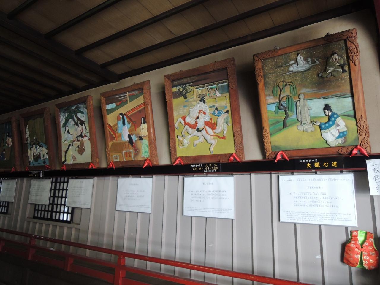 大門の中央二本の正面柱には、右側に「不闕日日之影向」、左側に「検知處々之遺跡」と記された柱聯が掛かっていました。興教大師の筆なんだそうです。 -