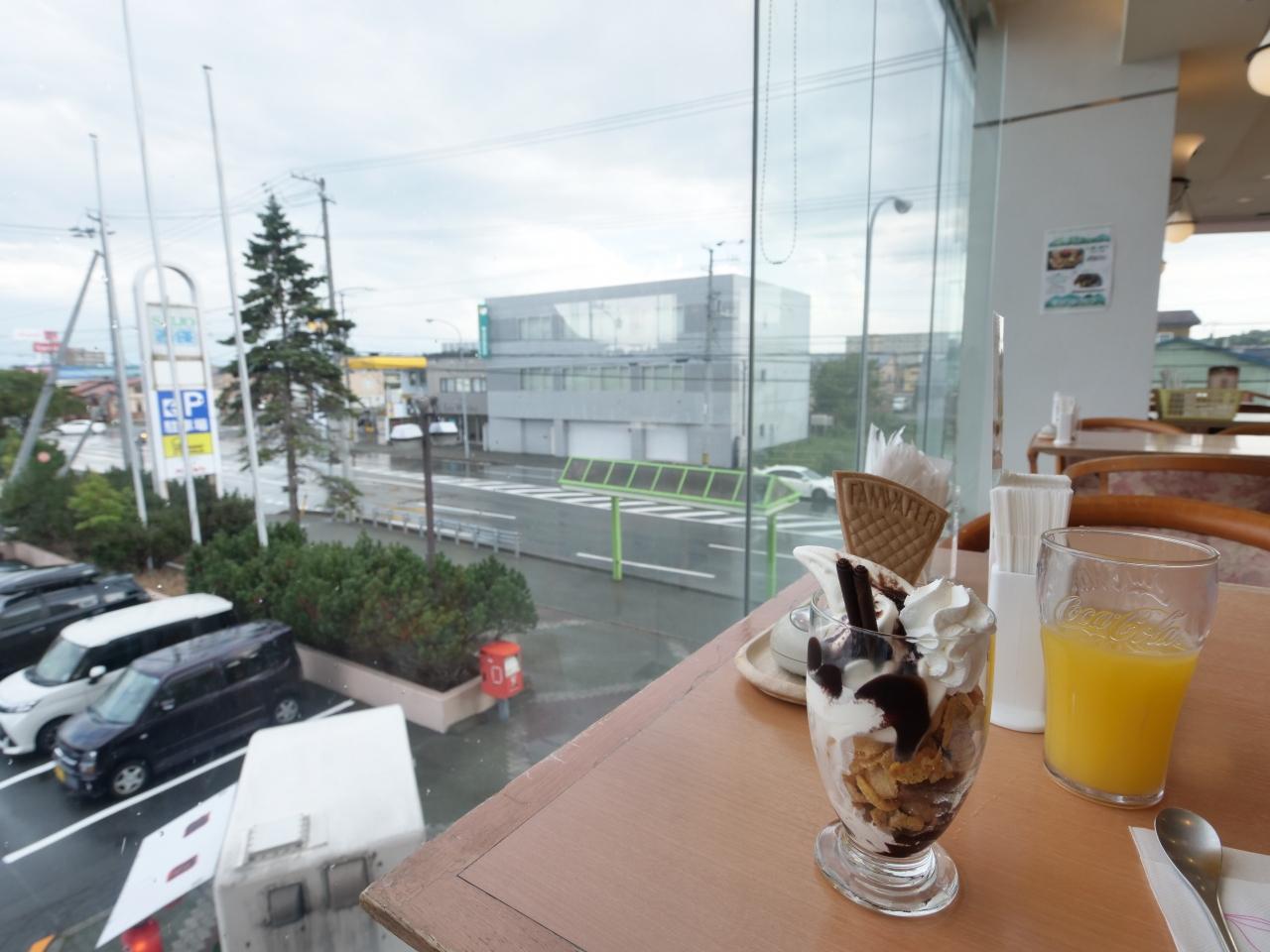 注文したパフェとドリンクバーを楽しみながらのんびり。しかしなんで屋内に引き揚げた瞬間晴れるんでしょう…今回の旅は天気に嫌われっぱなしですね…ペリカン グルメ・レストラン