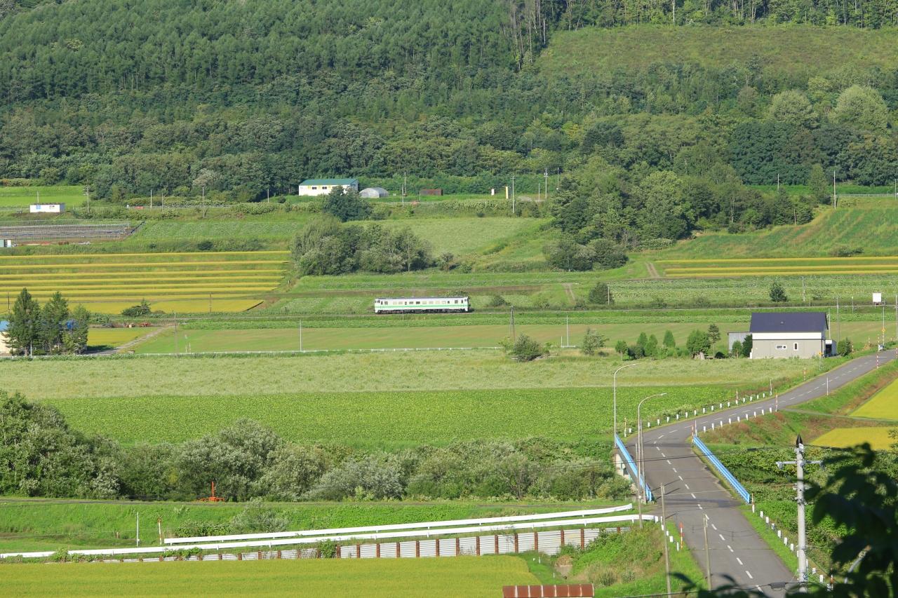 それでも北海道の雄大な景色と「シンプル・イズ・ベスト」の国鉄型車両は本当良く似合いますね~次の列車は光線の良い、踏み切りを渡った反対側に移動してみましょう!