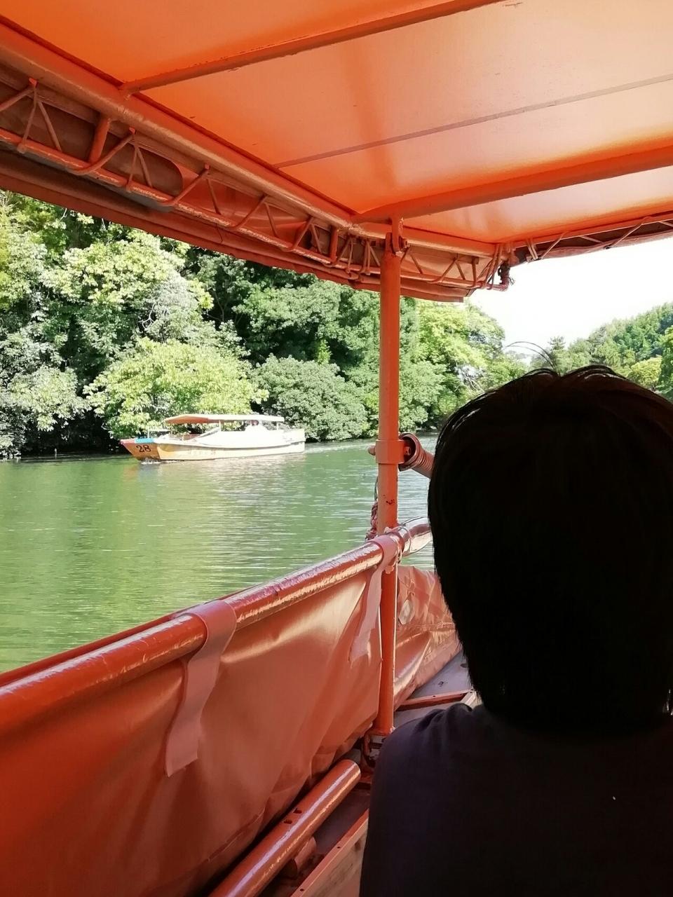船でお堀の遊覧。船頭さんの説明を聞きながら。 -