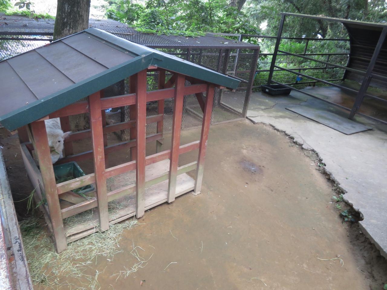 カピバラふれあい広場の奥にあるブラウンキツネザルのケージ