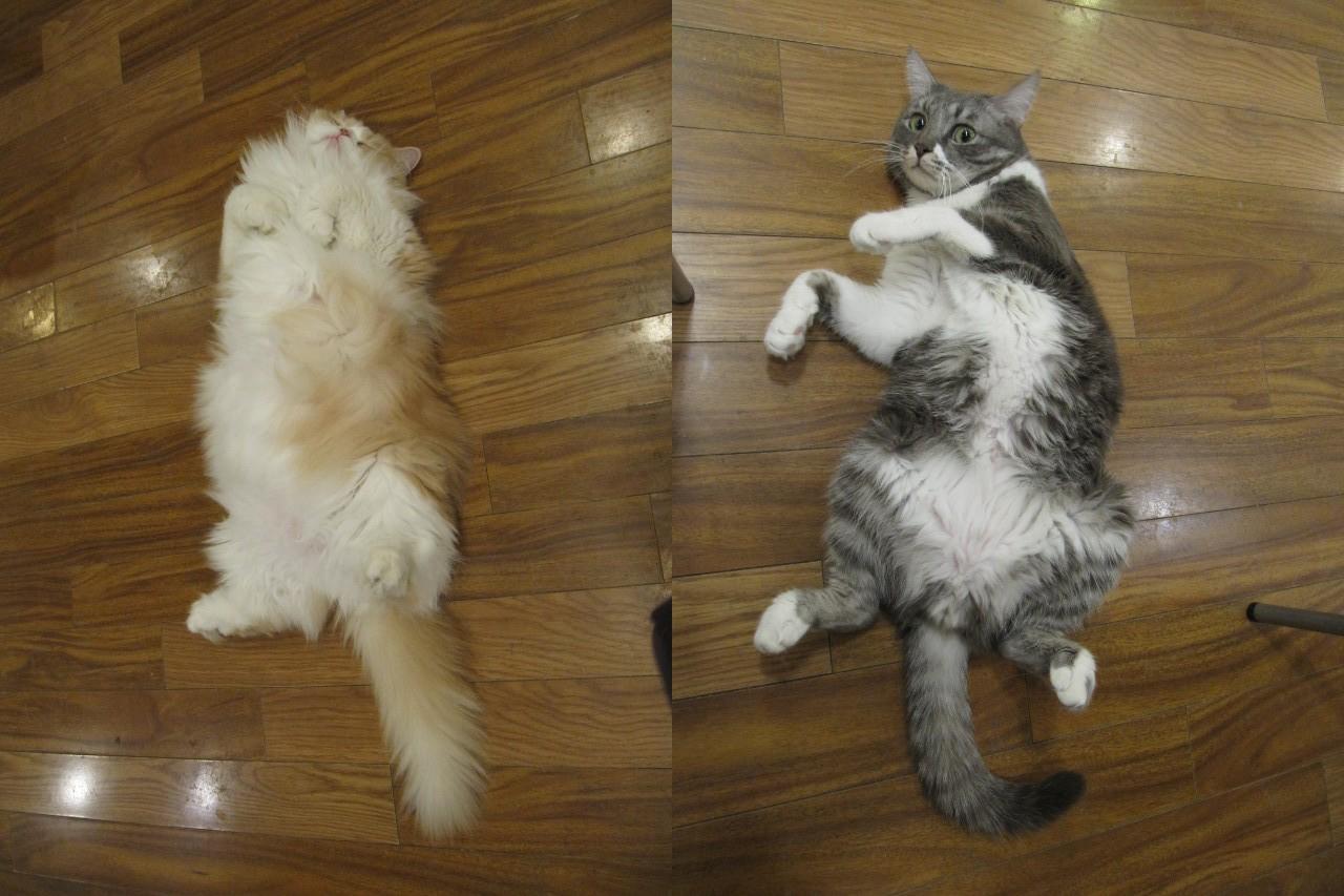 無防備な猫2匹。猫カフェ ヤンイヤンイ カフェ