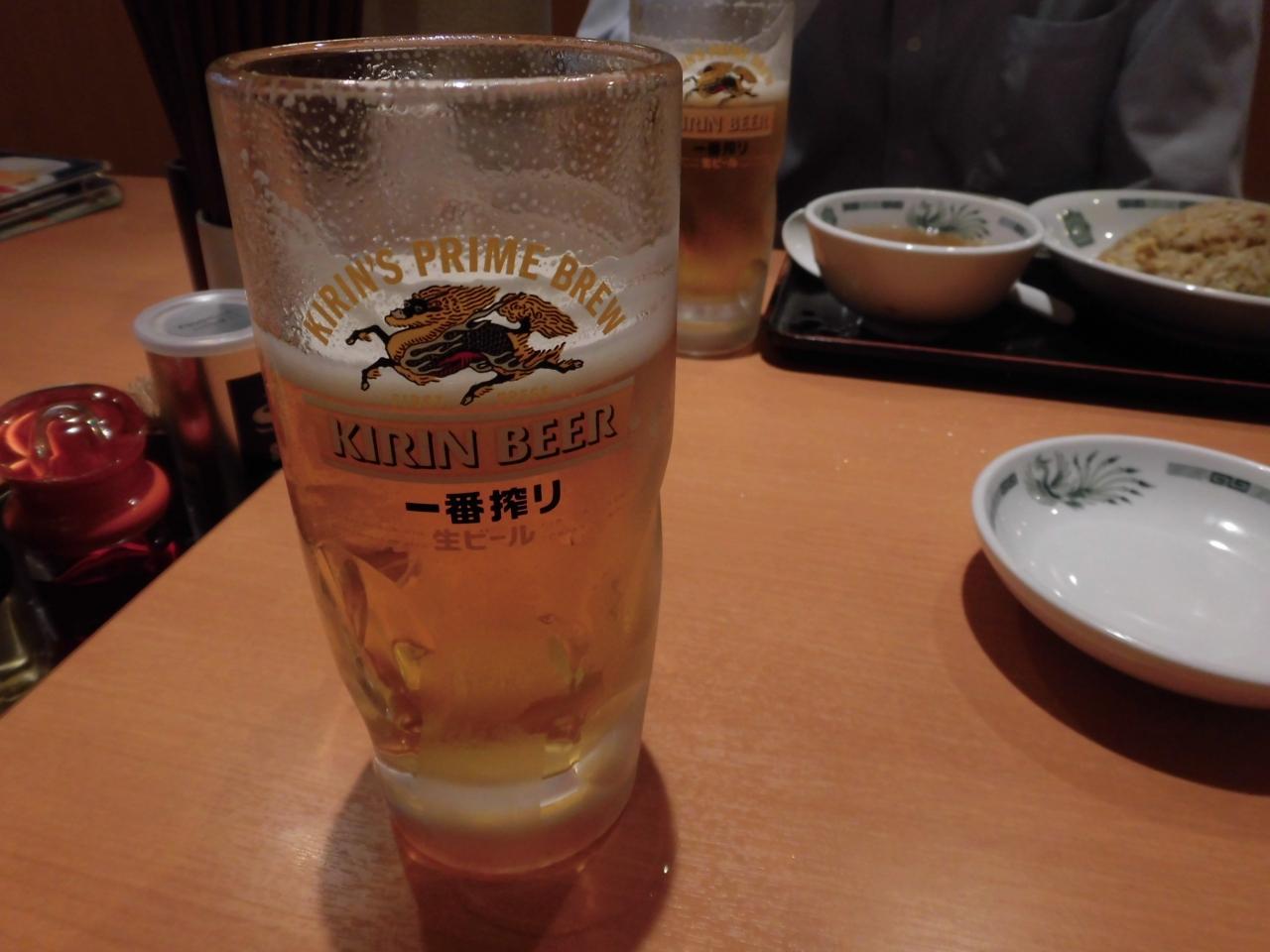 駅から徒歩数分の日高屋で、早めの夕食、ビールと餃子