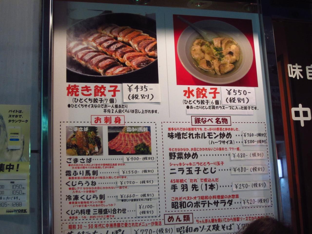 鉄鍋餃子2人前とゴマサバのお刺身、ポテトサラダ。ゴマサバは、これが最後の1皿のようで、次のオーダーからは売り切れで受けてもらえず。