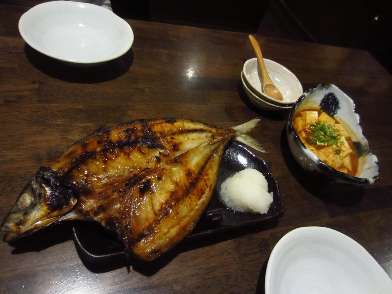 お得なセット発見。雑炊に+300円で、干物とみそ汁だったかな?がつきます。麻婆豆腐見たいなのも頼んでみました。