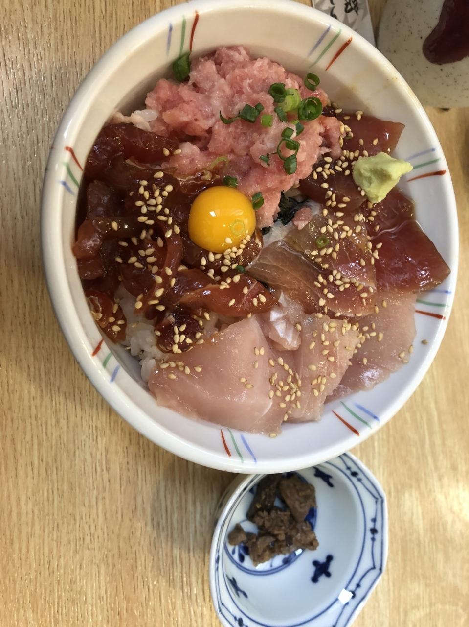 念願のとろとろ丼です。まぐろのユッケが一番美味しかった。