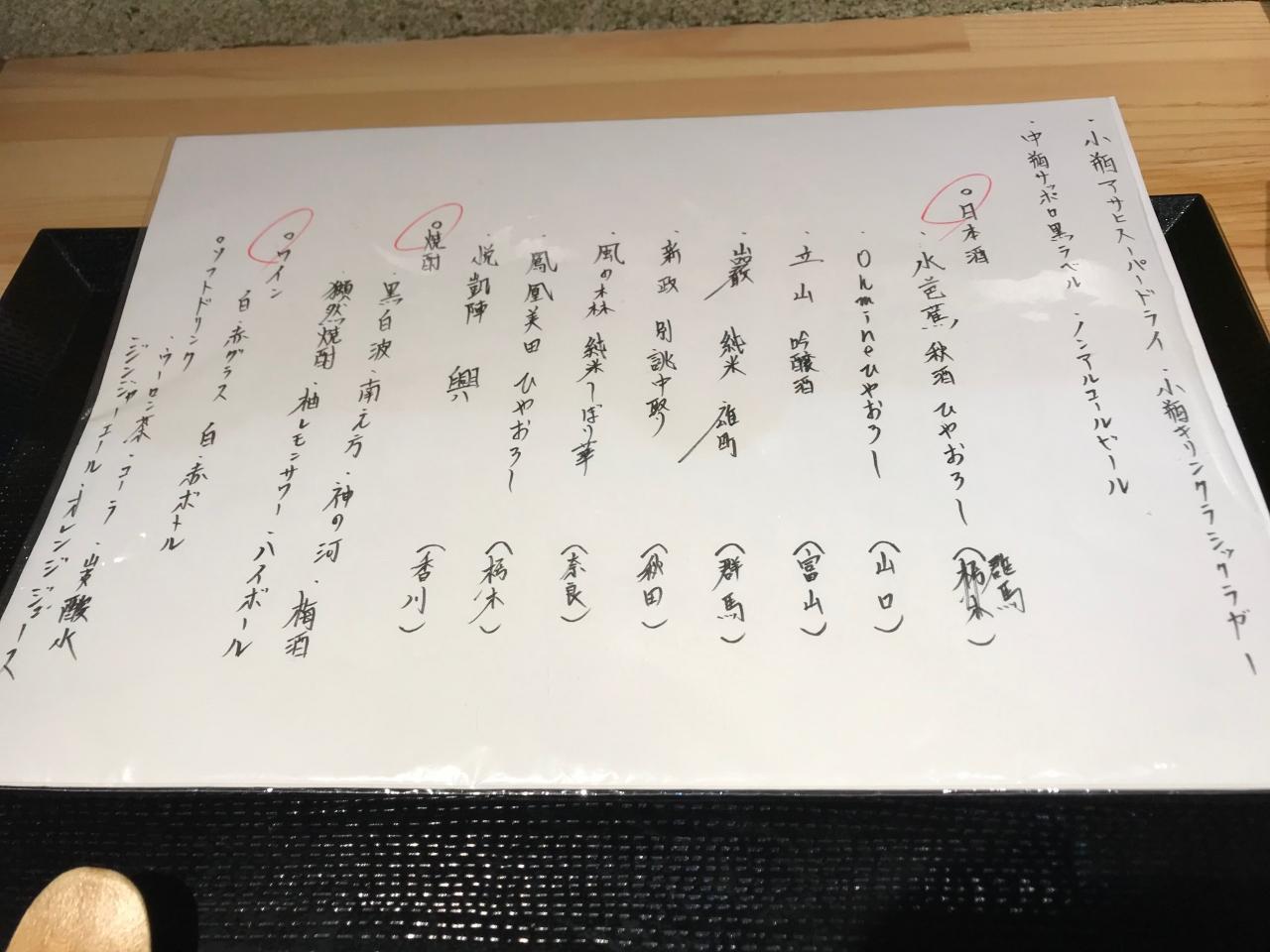 お酒のメニューは