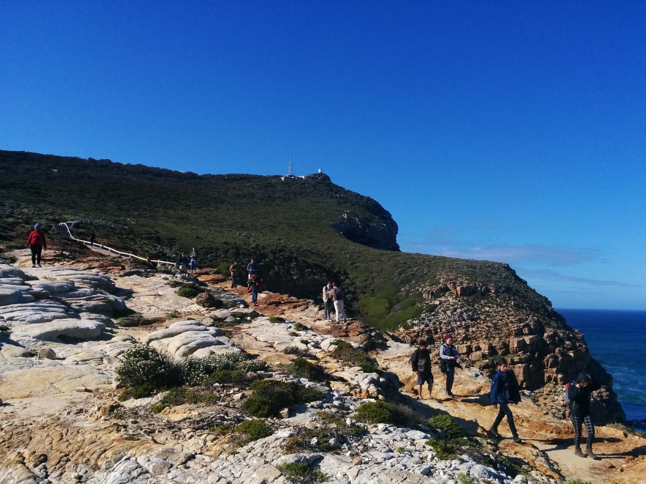 2時間走って、ケープポイントの駐車場でバスを降り一旦解散、各自自由にランチ休憩(1時間半)に入ります。私はケーブルカーで昔の灯台がある展望台へ。