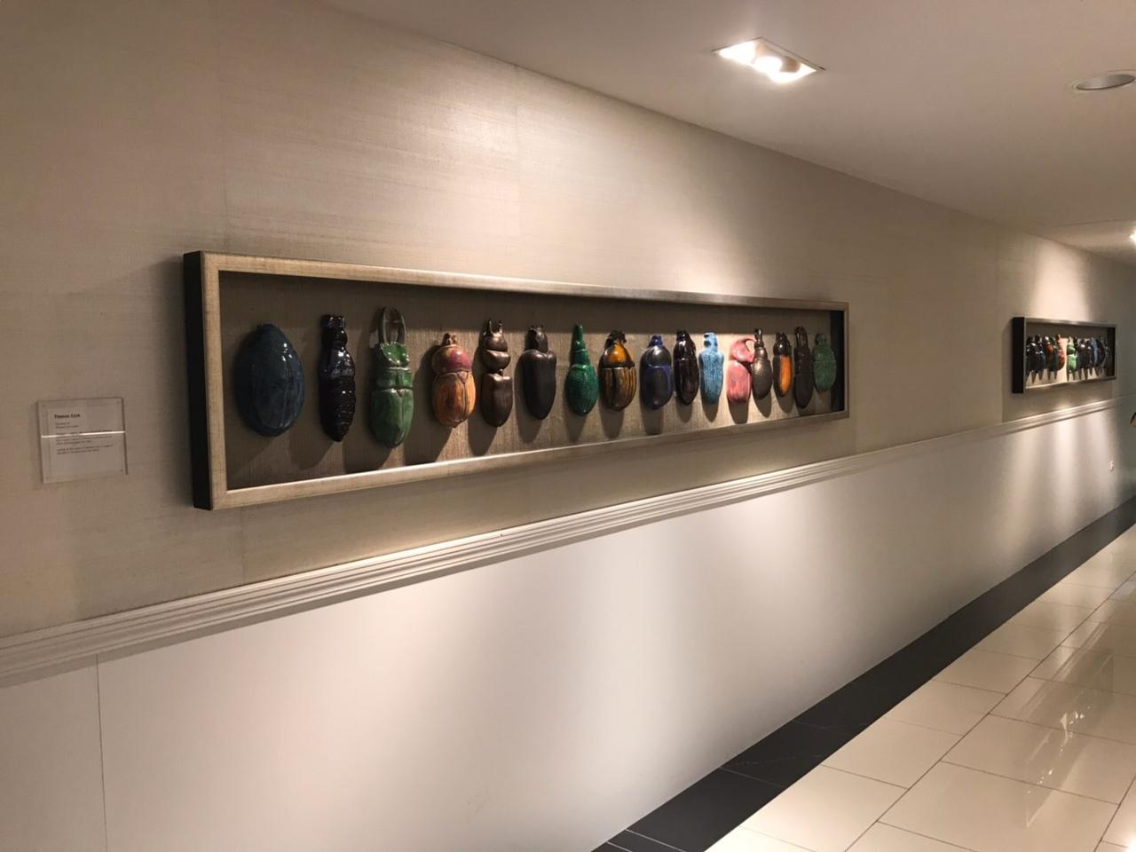 Tギャラリアのトイレ前の廊下に、カブトムシのオブジェが並んでいました。