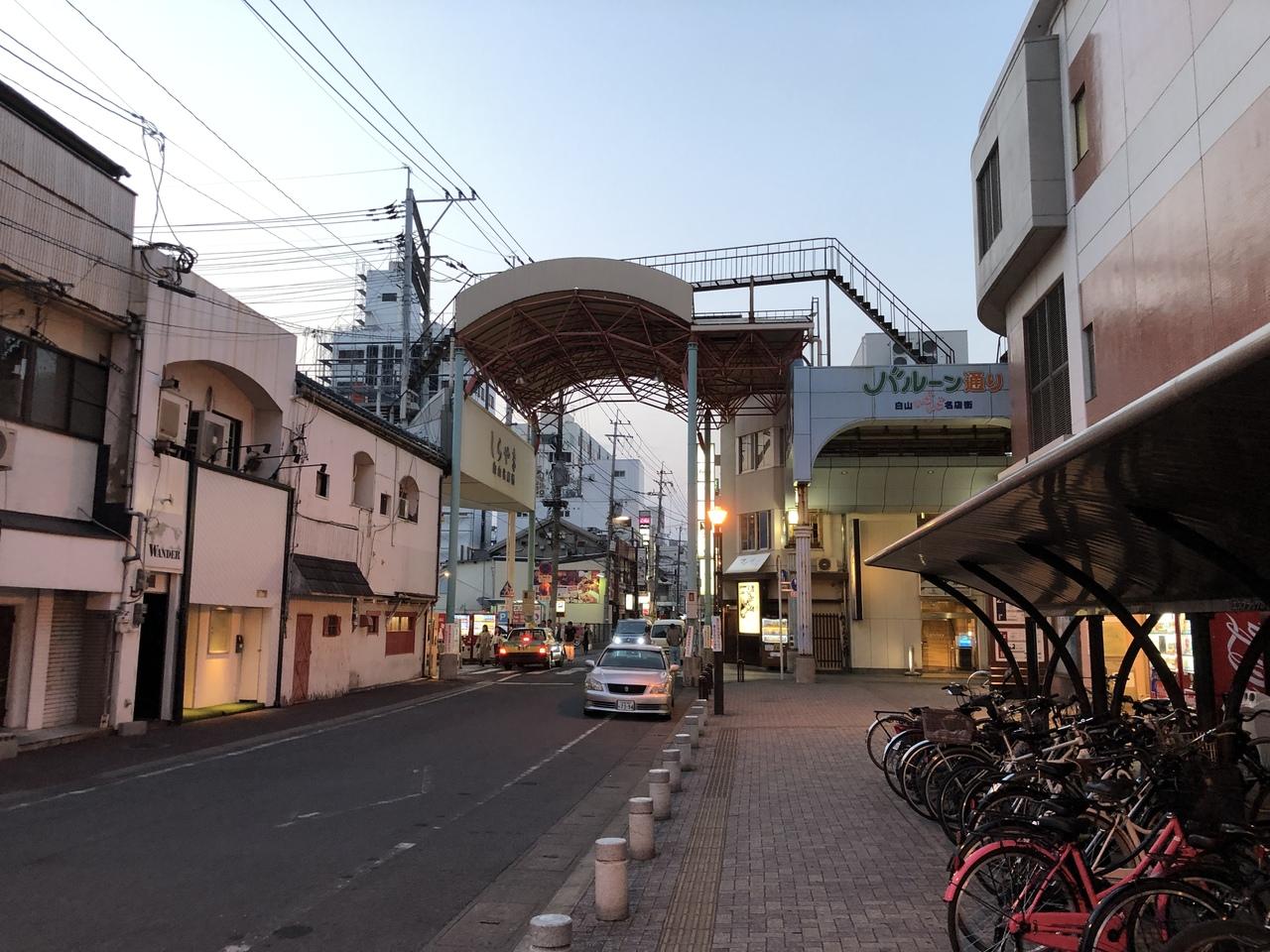 駅から少し離れたところにある繁華街「白石名店街」 -