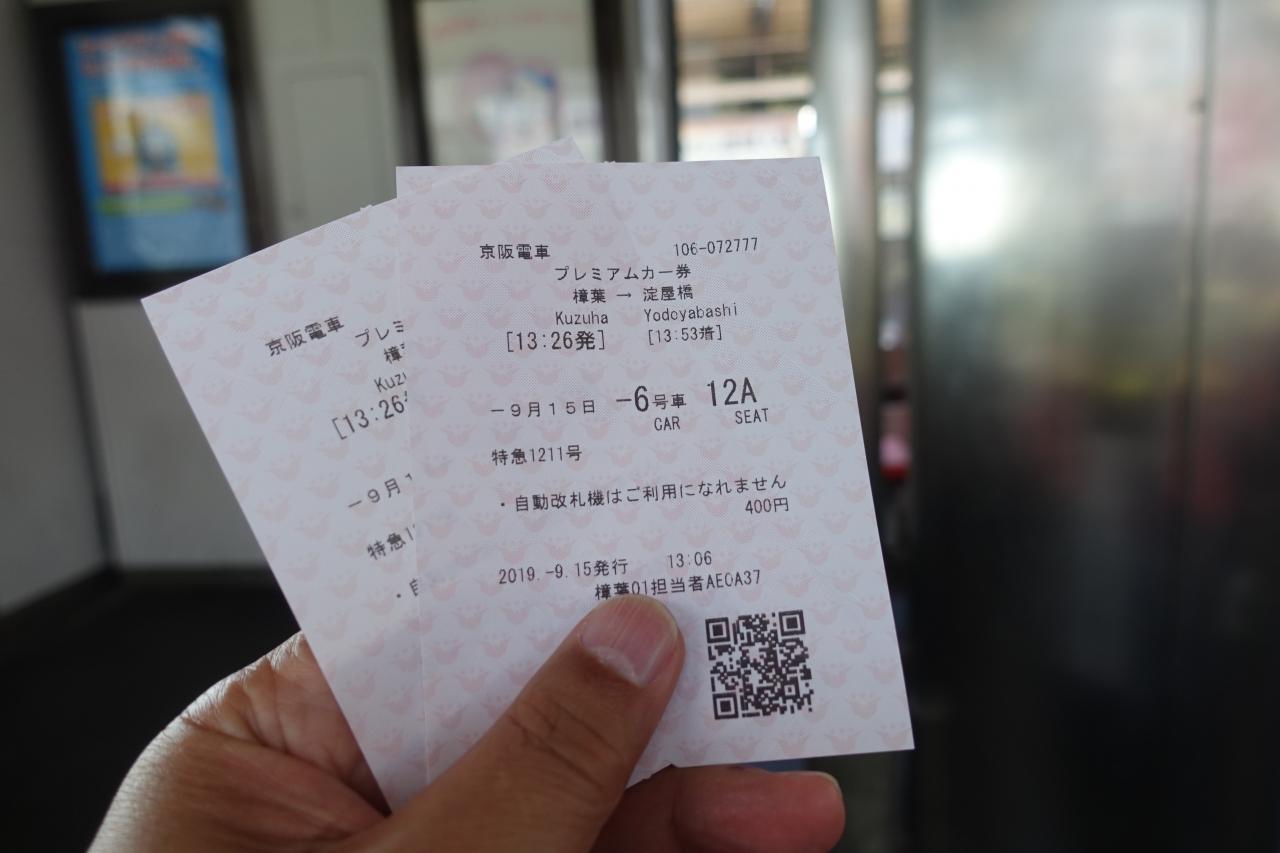 樟葉駅で降りてプレミアムカー券を購入します。発券窓口で相談して並び席の空いている次の次の電車にしました。時間の余裕がないと厳しい。