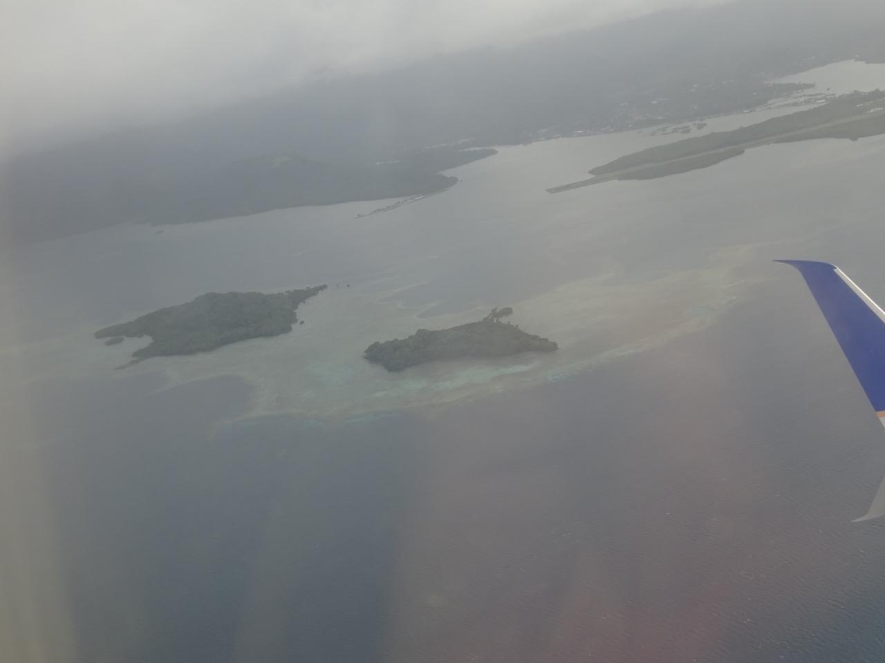 コスラエの空港に到着します。(コスラエ島のメインの山のフィンコール山は女性が寝そべっている形に見える為、「スリーピングレディ」と呼ばれています。)ここからはちょっと、よく、分りません。)