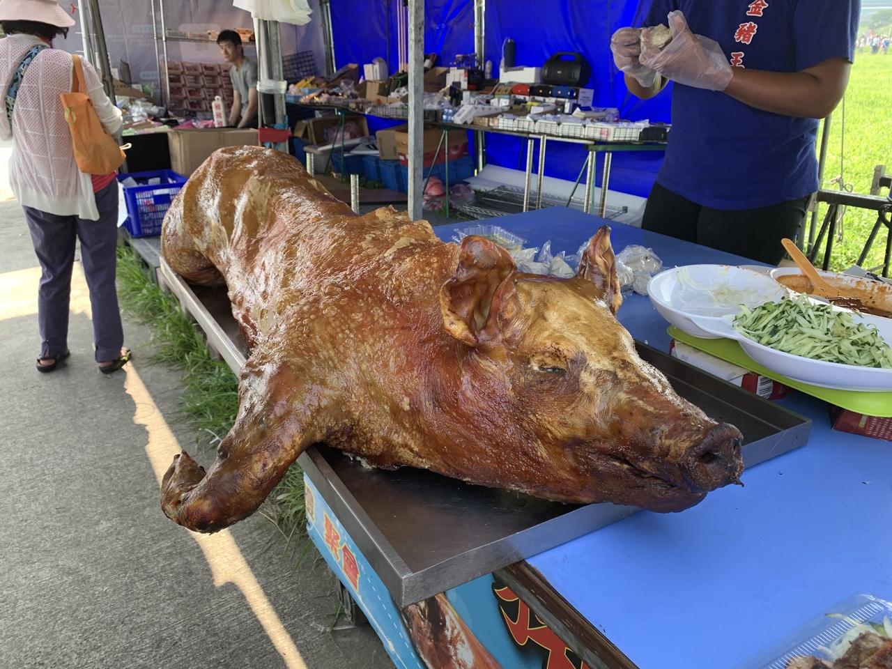会場内には沢山の屋台が、中には豚の丸焼きも(^^;