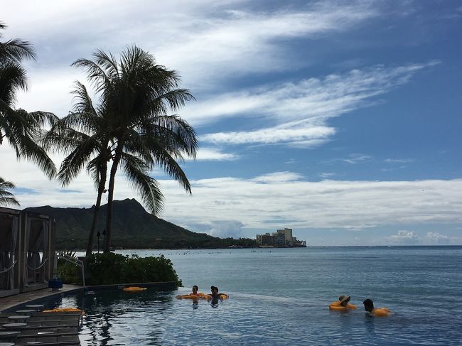 あっと言う間に快晴になり、インフィニティプールも人が増えてきました。それにしても、ホント海とつながってるみたいですね。