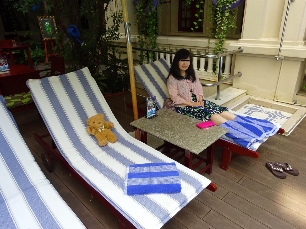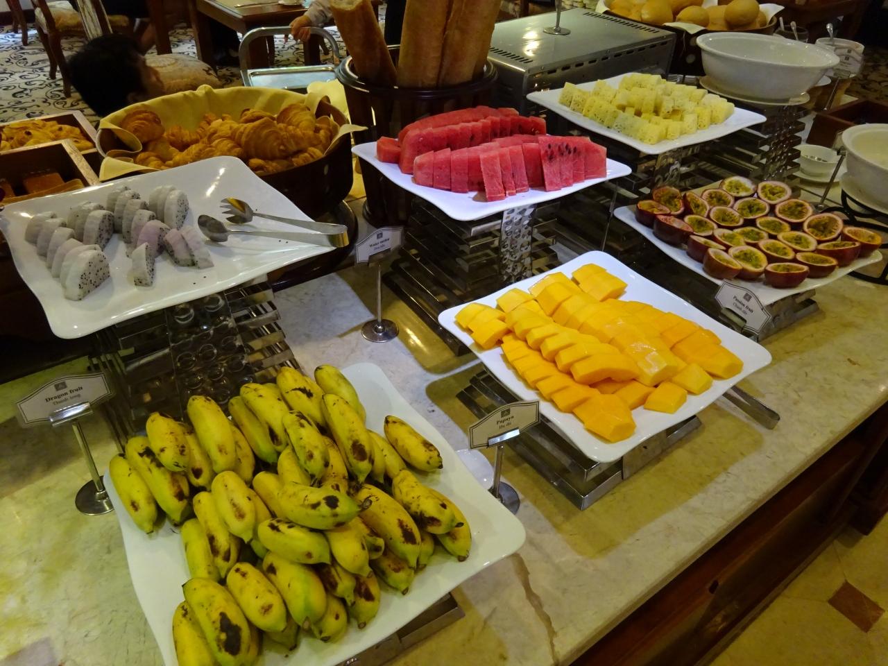 2日目は,1:25発のJL079便。5:20タンソンニャット空港着。5:40タクシーでホテルへ。6:00グランドホテル着。7:50 フォー・フォアで朝食。10:00 マッサージ。12:10 旧館にチェックイン。13:05 モン・フエで昼食。ドンコイ通りの散策後,17:15 ホアン・イエンで夕食。