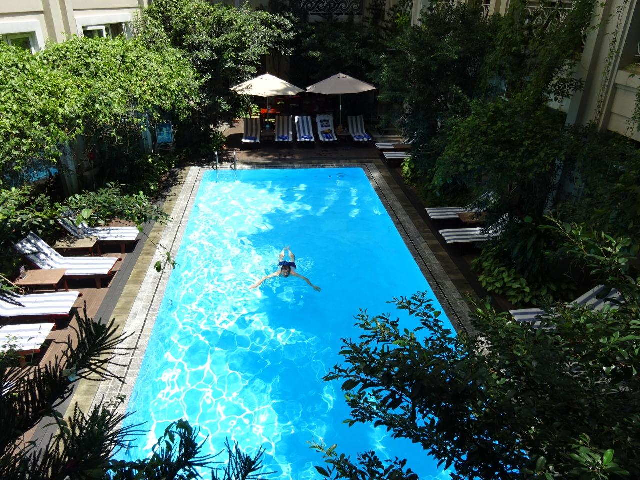 ビルの谷間のプールなので,午前中に日が差し込みます