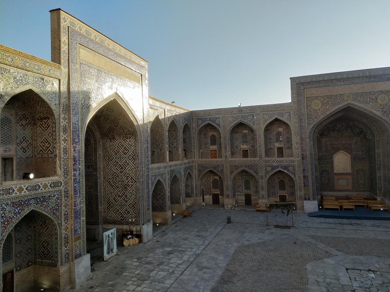 シルクロード観光を代表する景観が非常に美しいです。3つの巨大なメドセレ(神学校)が朝日を浴びて、何時まででも見てられます。