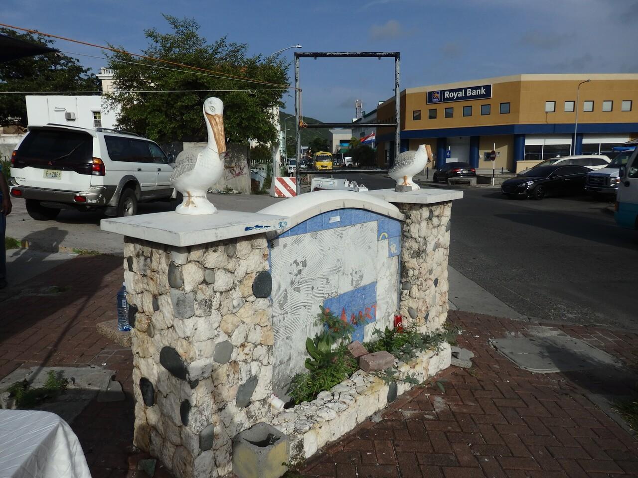 もう片方のマーケットプレイスの門はボロボロ。向こうのペリカンはあたまの半分欠けている!