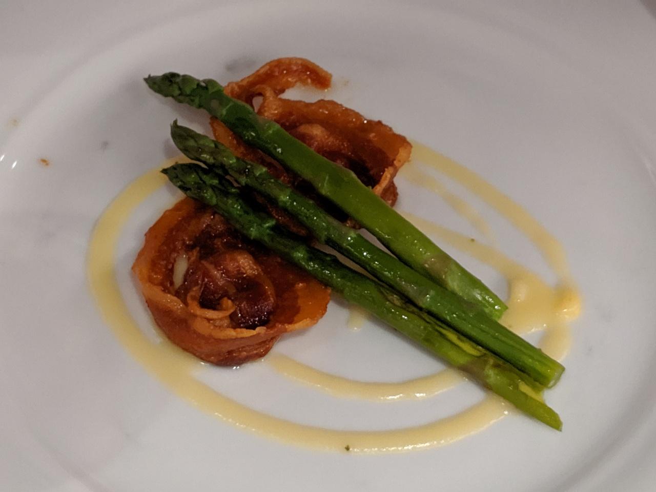 アスパラとベーコン。少食な二人ですが、メインの前は2皿と欲張りました。
