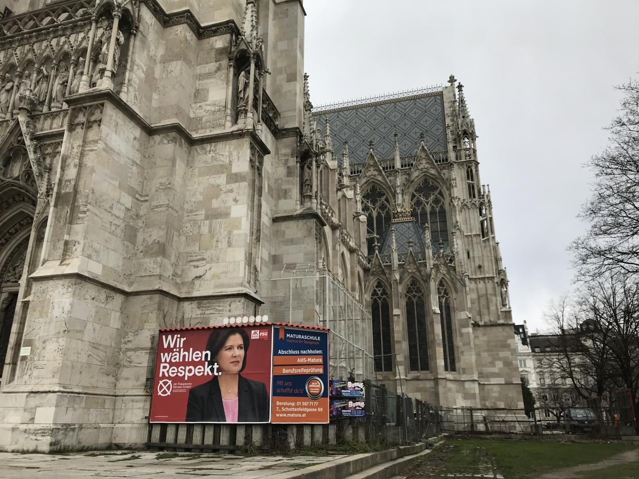 ヴォティーフ教会。フランツ・ヨーゼフ一世の暗殺未遂事件が発生後、彼の弟で後年メキシコ皇帝となるマクシミリアンが建造を命じた教会。ネオ・ゴシック建築で有名だがステンドグラスの価値は高くないらしい。