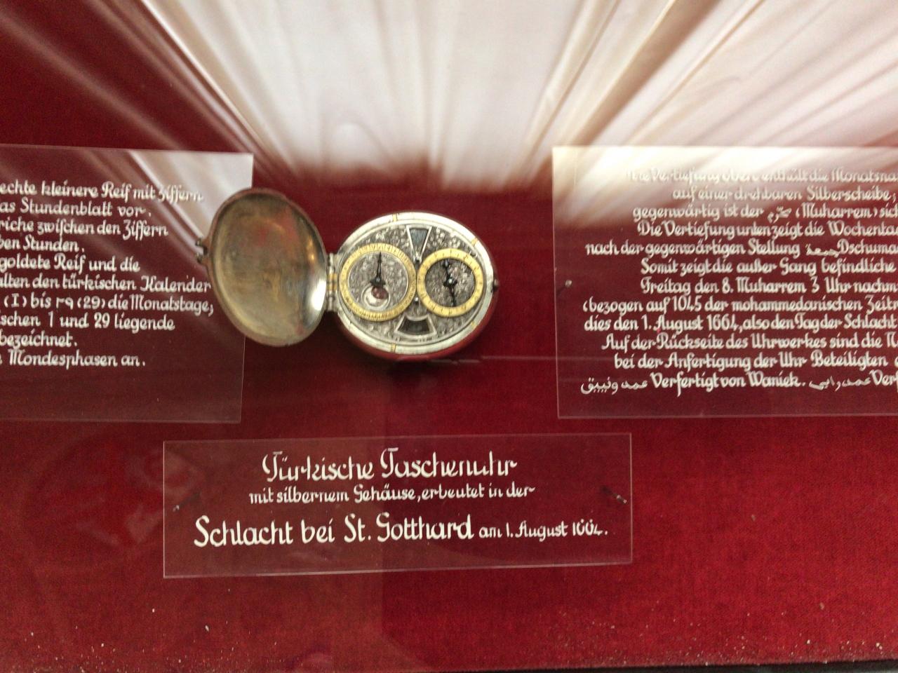 ゴットハルトの戦いの戦利品で得たオスマンカレンダー時計。ゴットハルト(ゴッタルド)はロシアとナポレオン率いるフランスの戦いだけどこれどっち側の戦利品なのかは不明。そもそも戦利品なのかすらわからん。