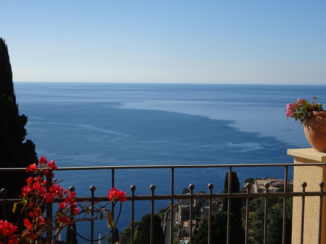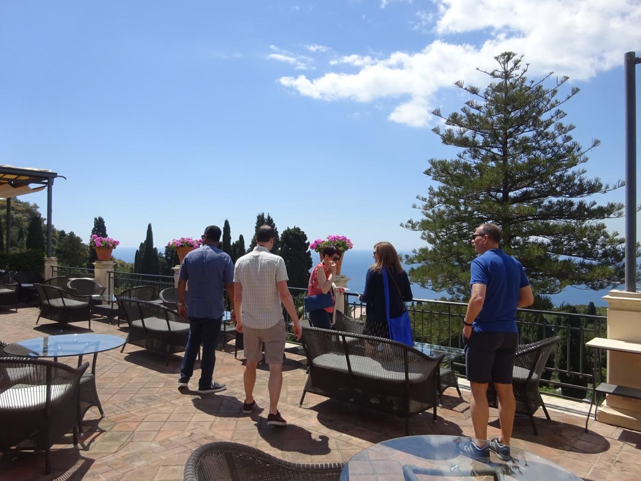 今回タオルミーナで見た中では、このホテルのテラスからの海の眺めが一番きれいでした。