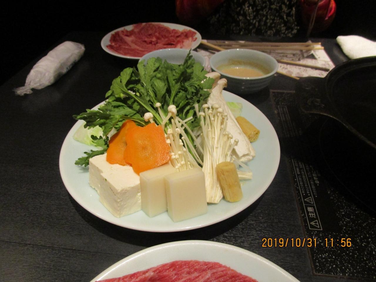 「肉の万世」。「シャブシャブ定食コース・野菜」