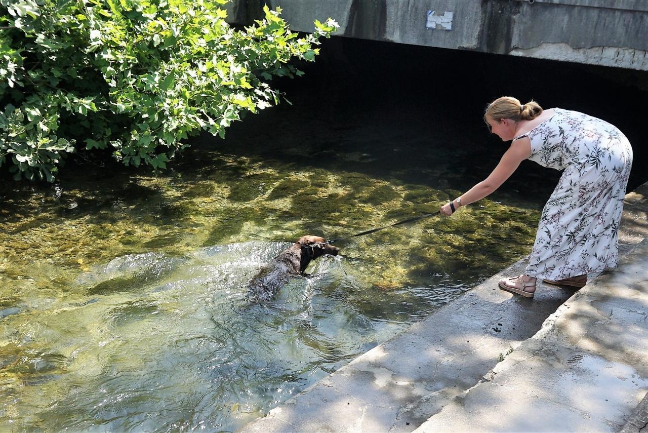 犬が川に入って、いつまでも上がらないことに困り気味の飼い主さん。