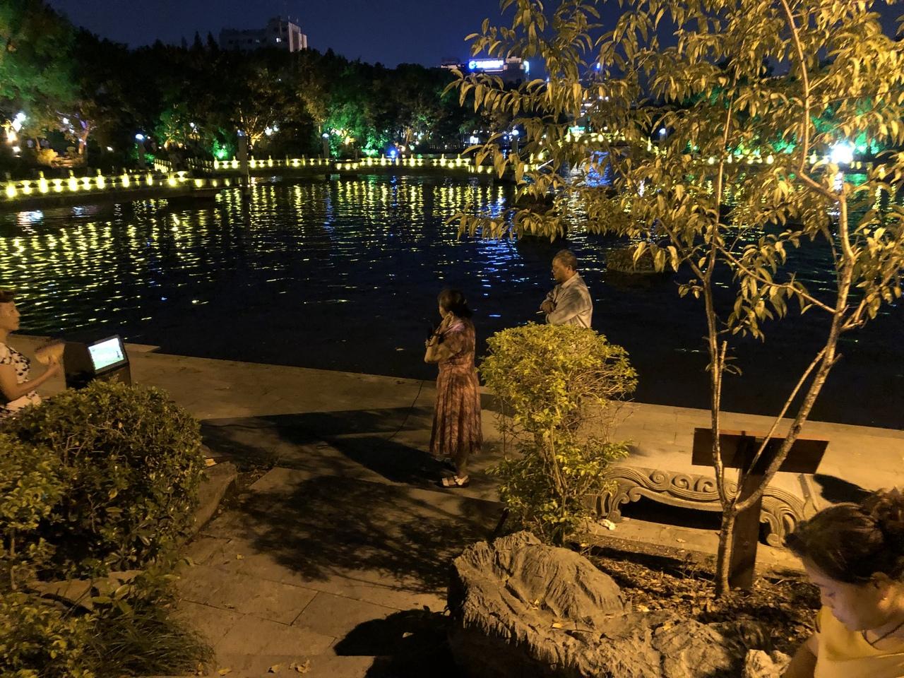 夜は船には乗らず四湖の周りを散歩