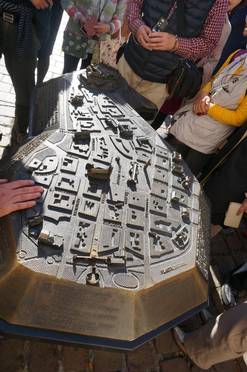 旧市街を囲む緑の公園、バルバカンの近くにある額縁内に収まるオブジェ