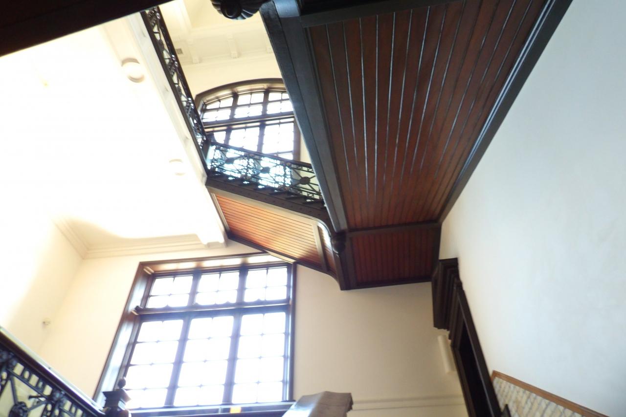 地下2階 地上3階であるが、屋根がある。その屋根上に3基の避雷針が載っている。