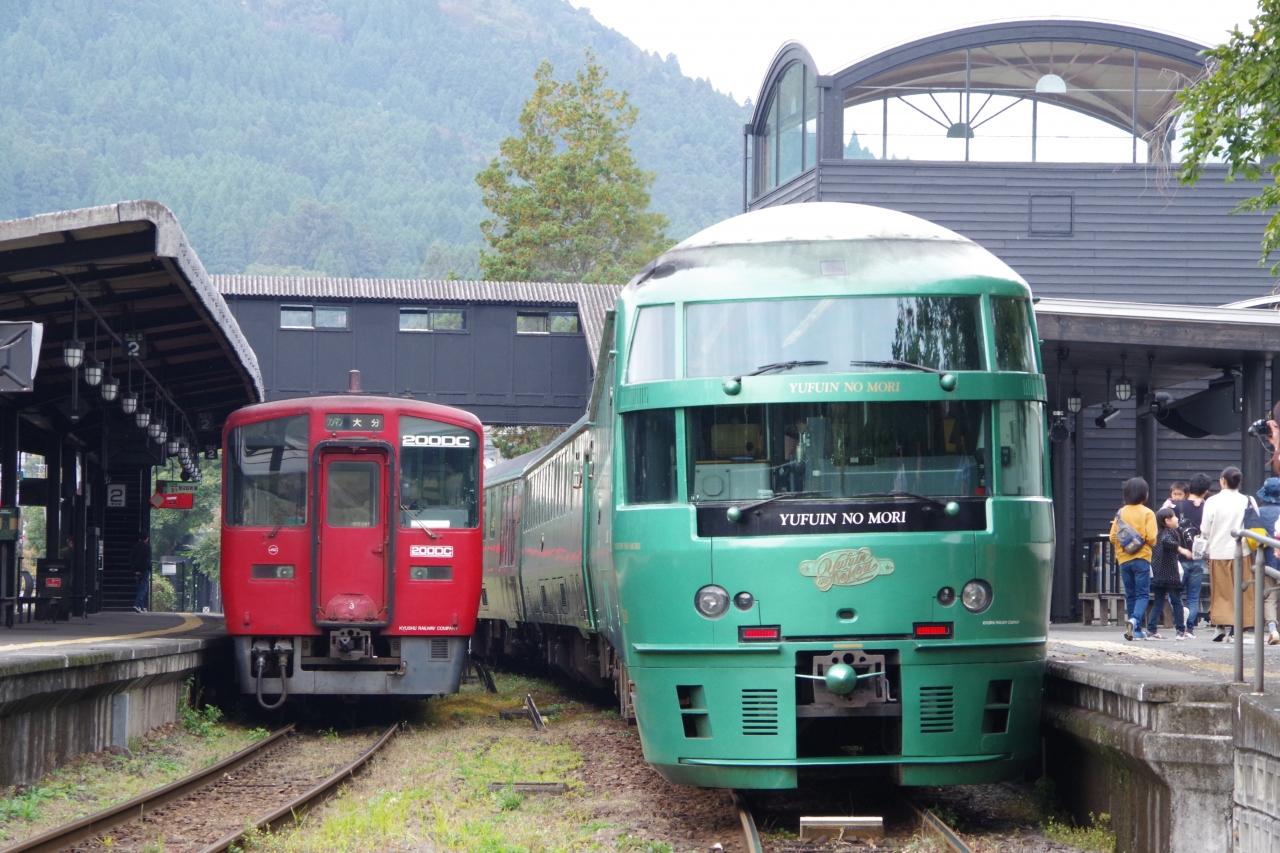 南由布駅だと由布岳をバックに撮影出来ますよ。