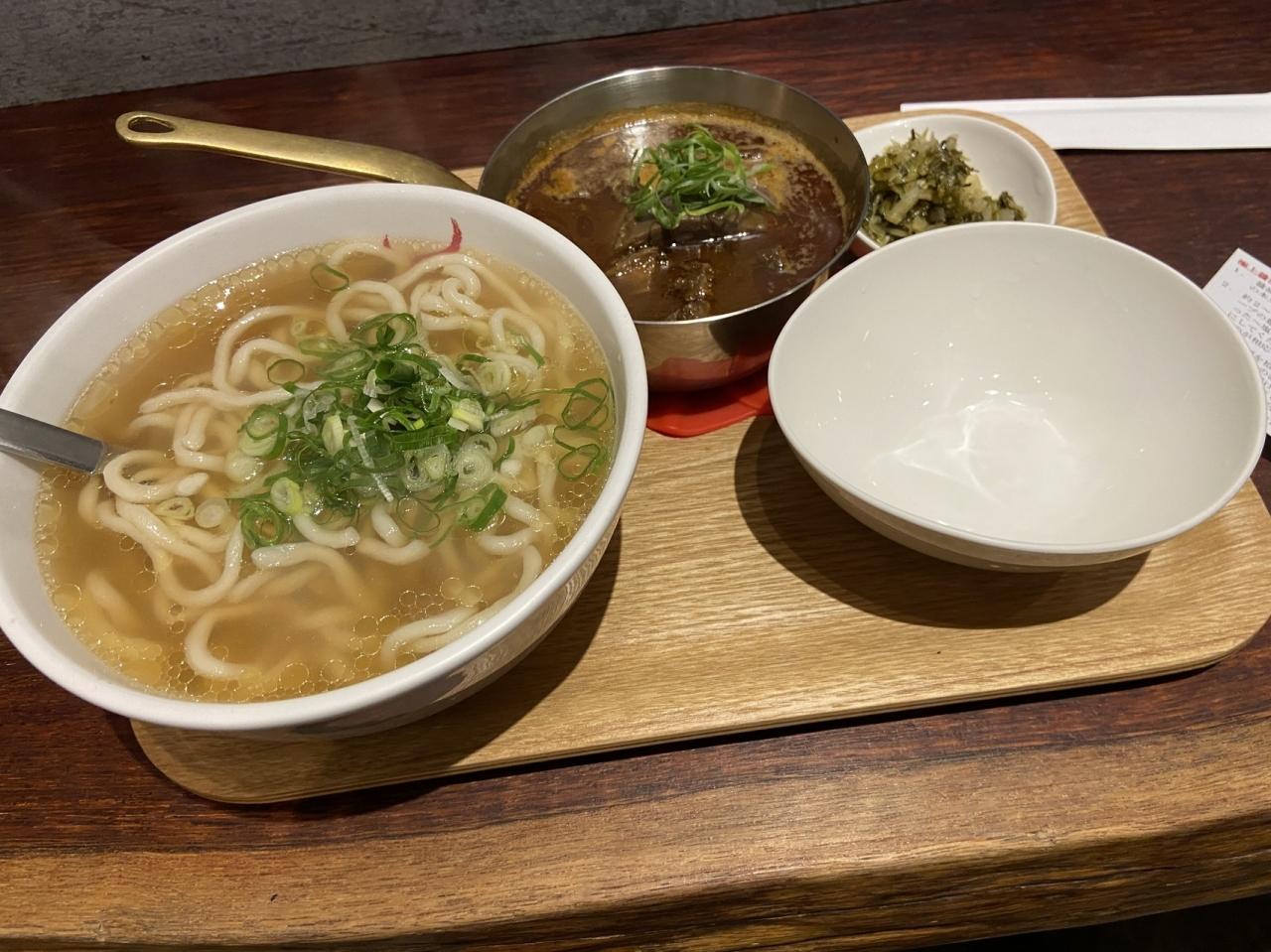 シチューみたいなやつを麺にかけてからさを調整していきます。かなり辛かったです。食べ方の日本語の紙も持ってきてくれたので、わかりやすかったです。 -