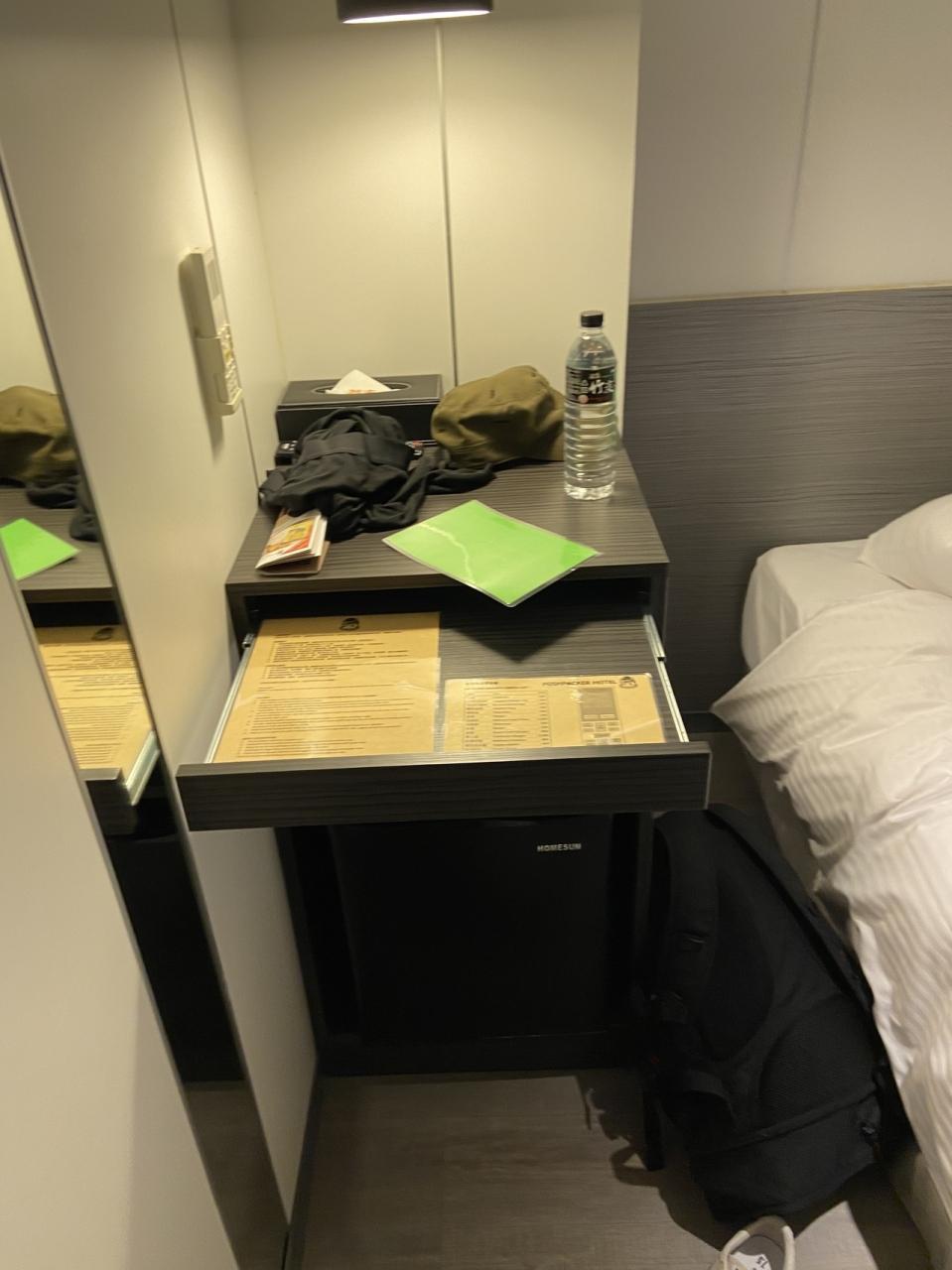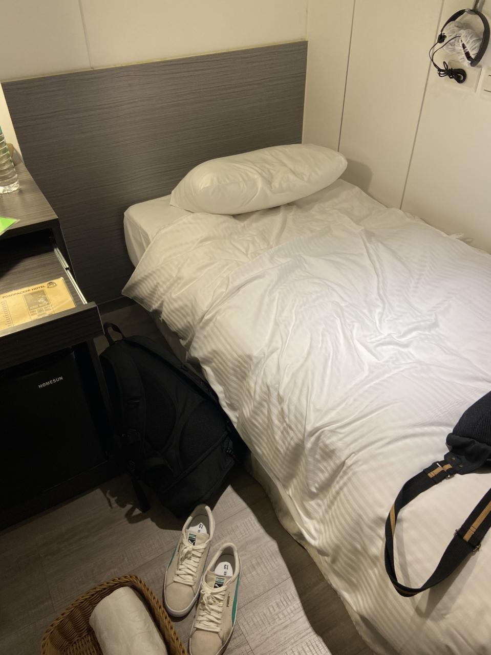 ホテルはベットと小さい机、冷蔵庫とテレビがあるぐらいで