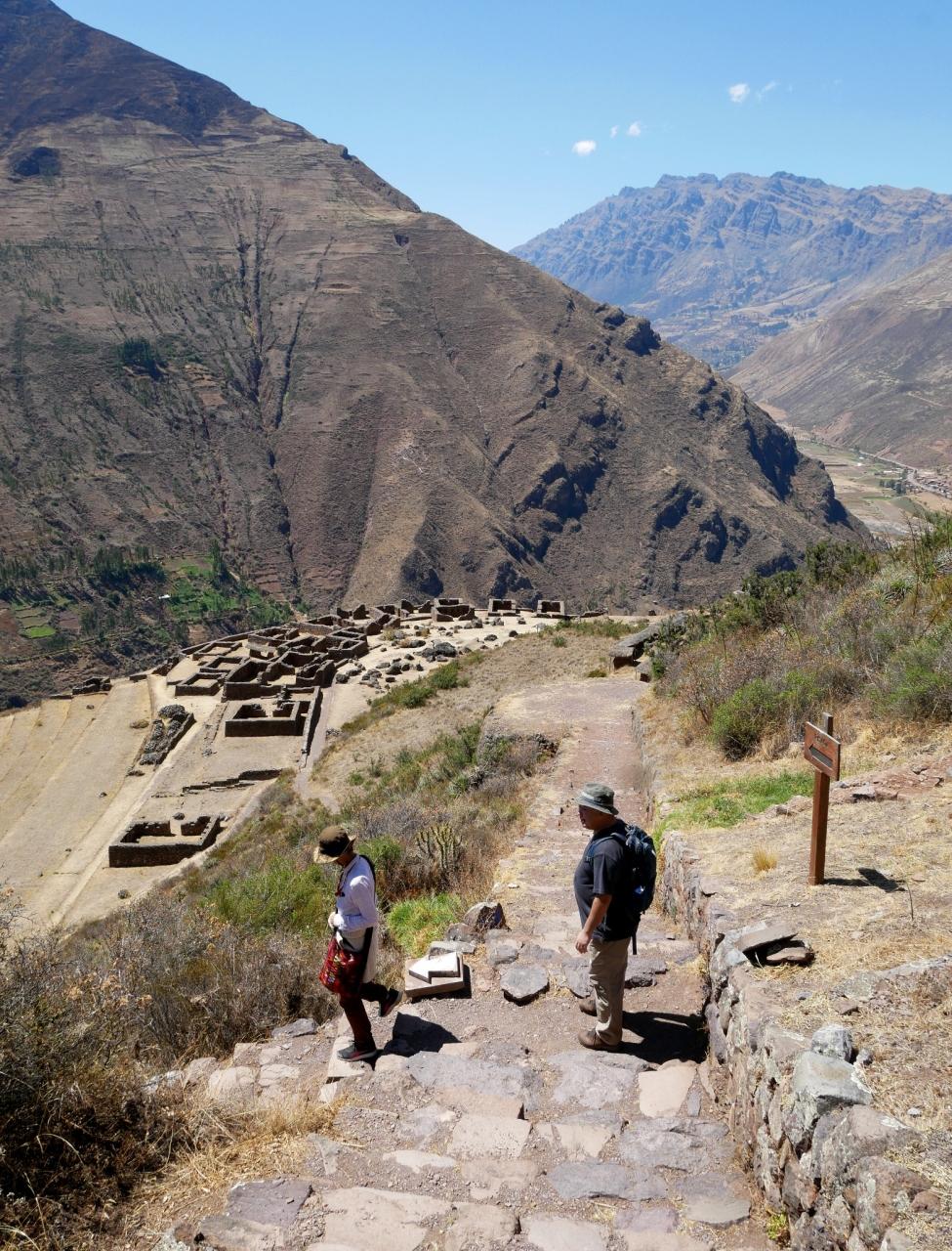 あ、よく見るとアンデネス(段々畑)が見えるわー。そして、山の頂上にも確かに遺跡っぽいのが見える気がする。あそこまでどうやって行くんだろう・・・。 -