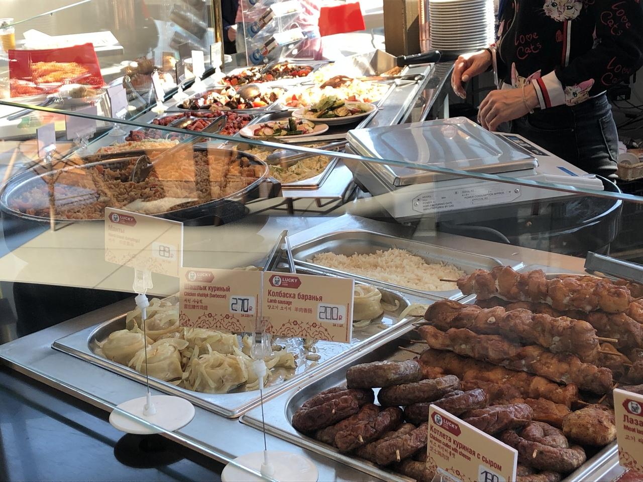 空港の飲食店はピザやロシア料理などお店が数店あります。