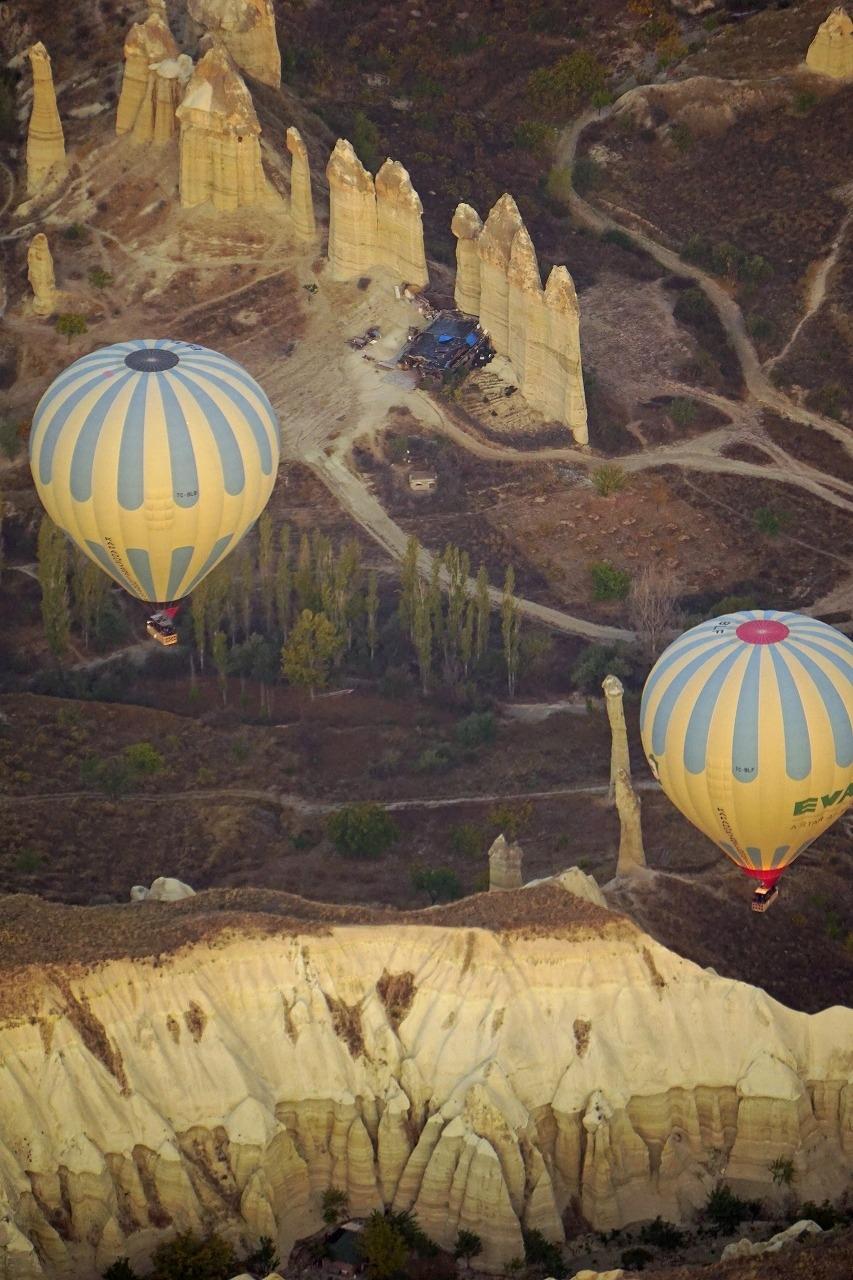 17年前にギョレメの洞窟ホテルに1週間ほど滞在しましたが、宿泊した最初の朝にグォーッ!という音に起こされたことがあります。慌てて部屋のテラスに出ると目の前を気球が横切っていく光景にびっくりしたことがあります。