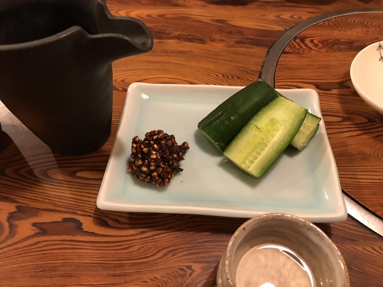 ここの蕎麦味噌はキュウリが付いてきて、もろきゅうみたいな感じで食べられます。