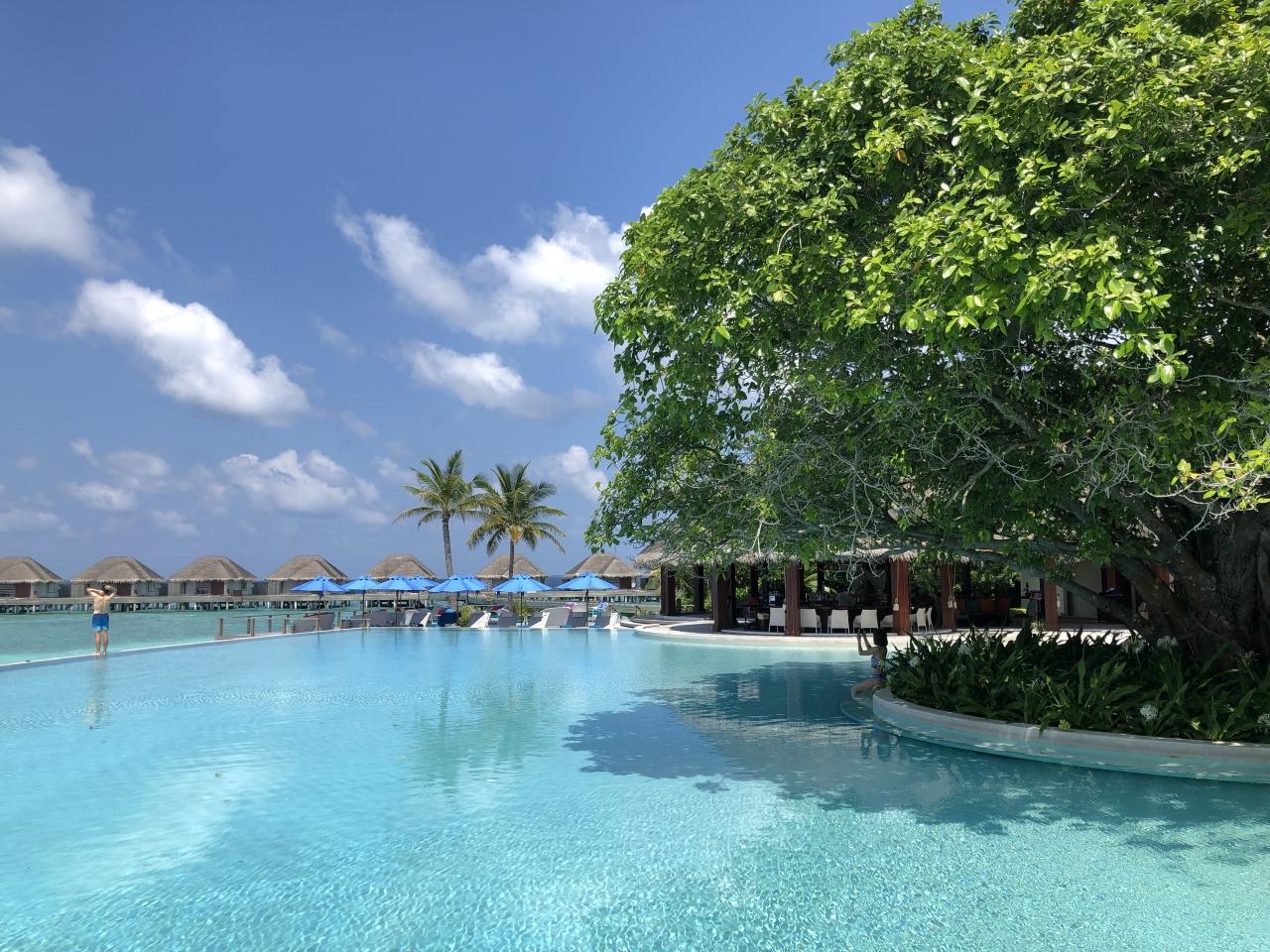 ホテルはバア環礁のデュシタニモルディブに宿泊。もともとは9月にサムイ島に半月ほど滞在する予定が、仕事の都合で11月に変更。11月は彼女が最長で1週間しか休暇が取れなかったので、乾季に入りかけるモルディブに変更。最後までデュシタニモルディブとハイダウェイビーチリゾート&スパで迷いましたが、マンタに会える「ハニファル湾シュノーケリング」の評判の良かったデュシタニモルディブに決定します。