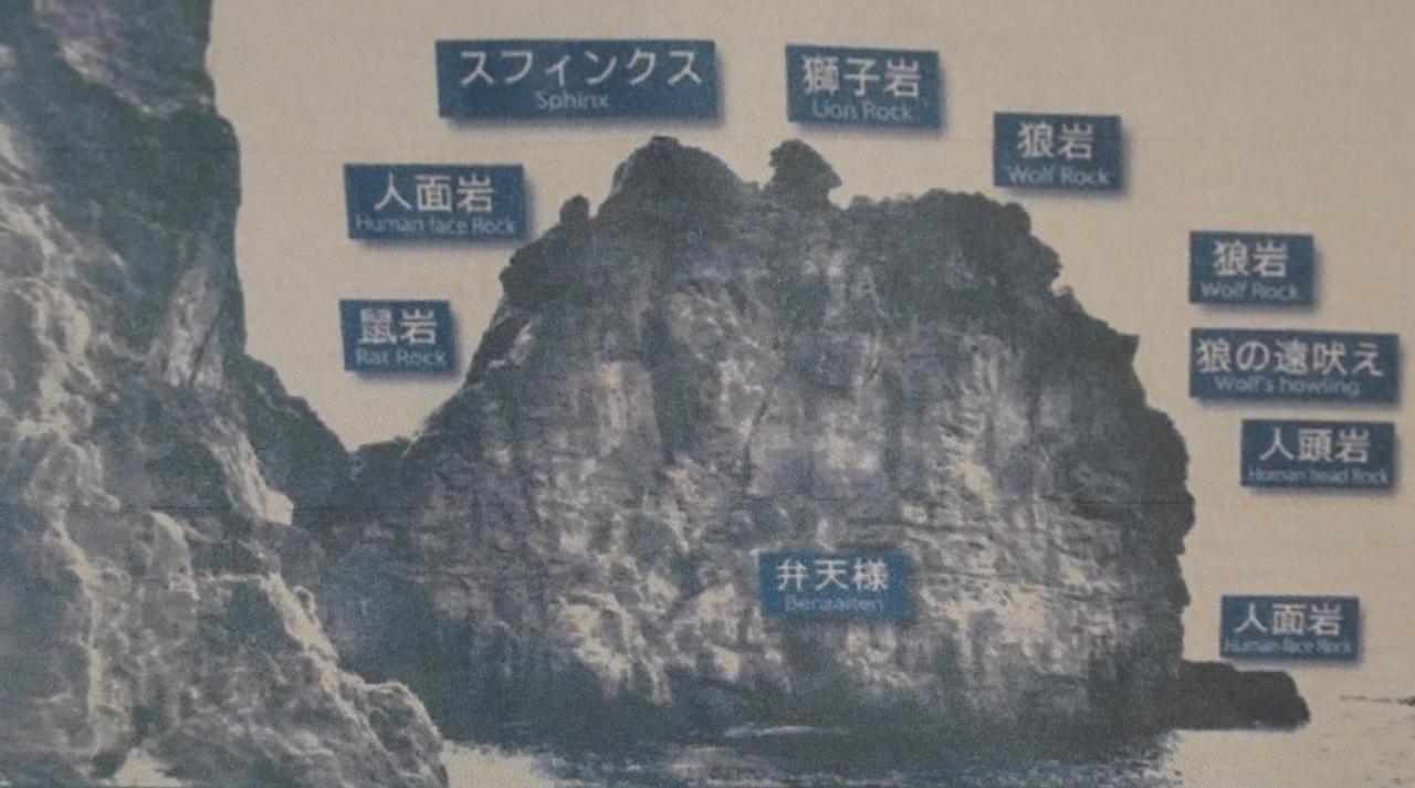 岩の上に荒波で削られた十像それぞれ名前が付いていました。