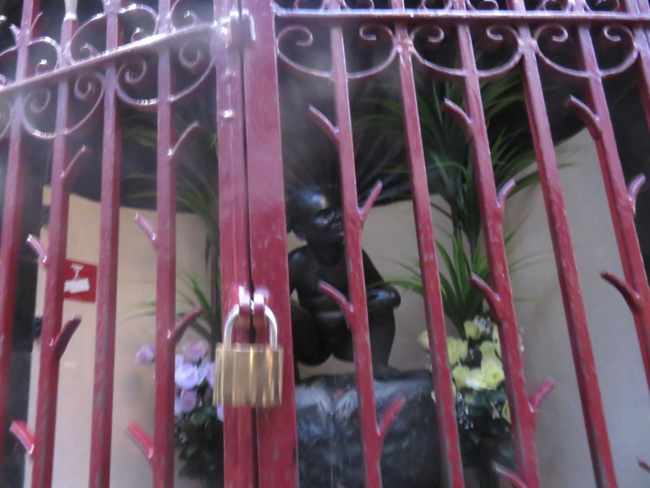 小便少女 小僧と違い皆が触るので柵が出来たそうです。