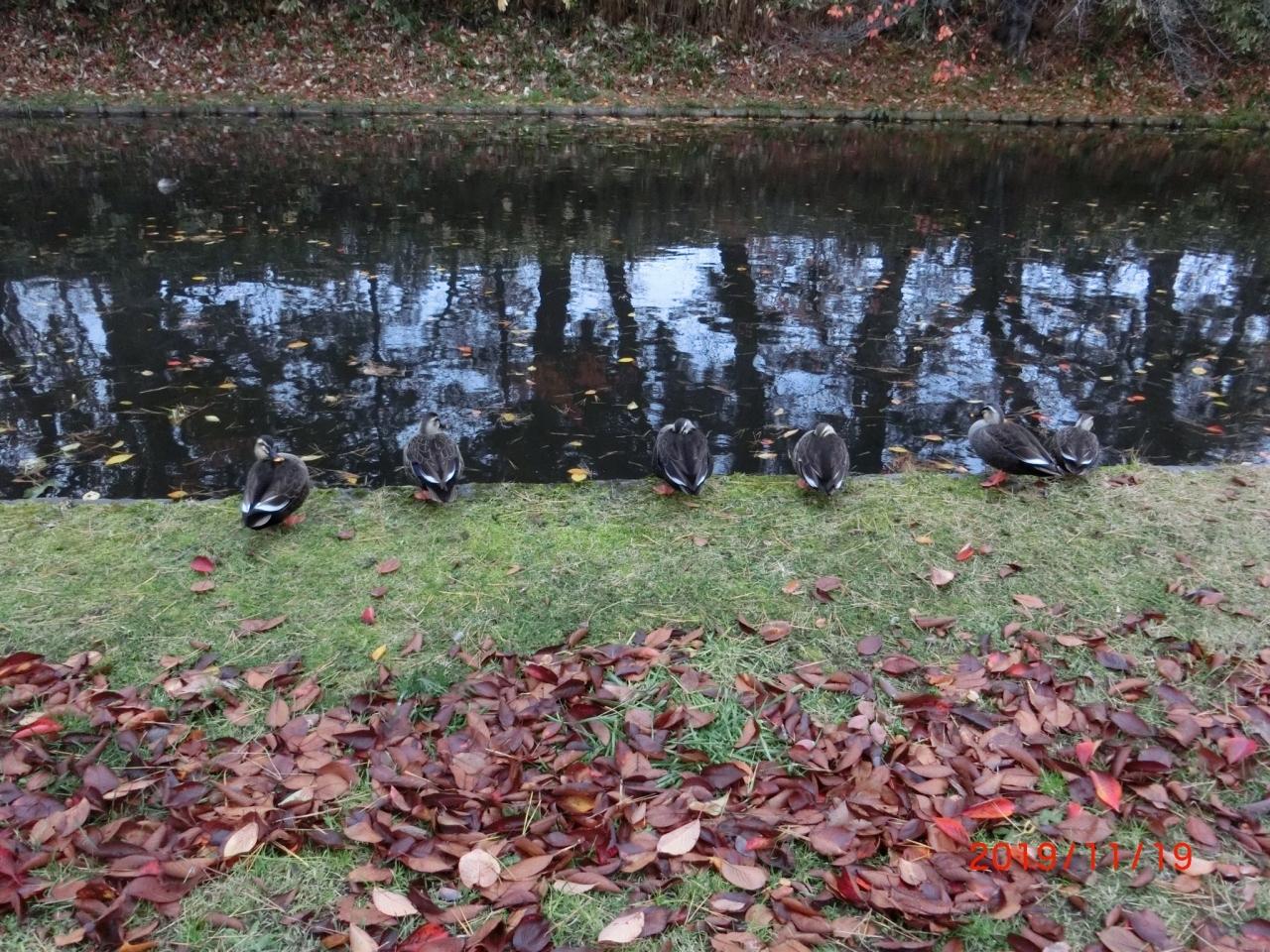 弘前公園の堀には鴨が寒そうに体を丸めてじっとしていました。