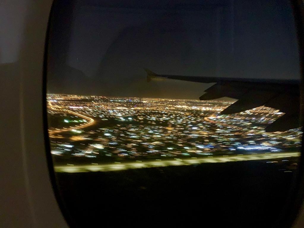 二度目のドバイ。乗り継ぎです。前回は昼だったが今回は夜。まるで都会のような光の海だ!