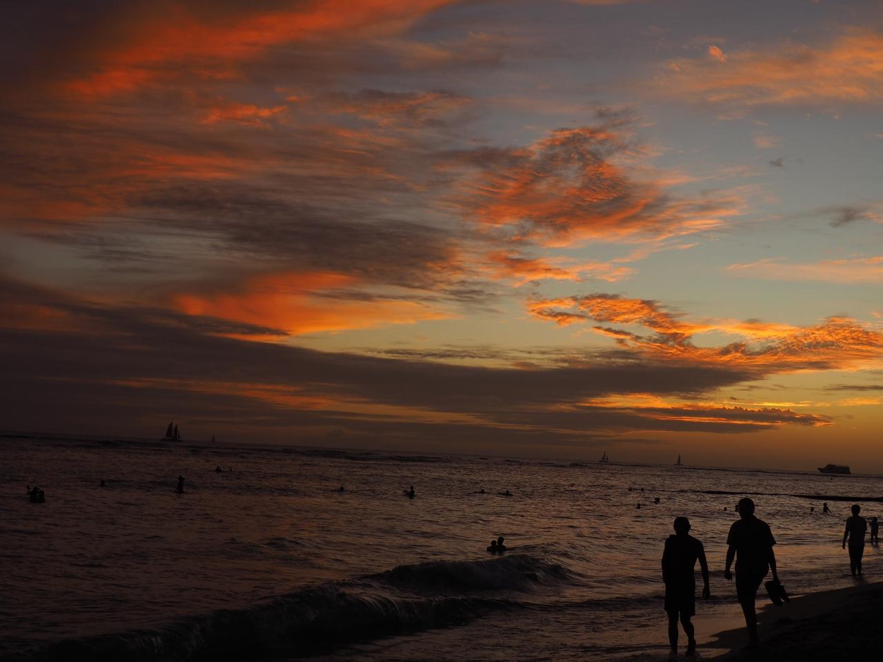暇なので、一足先に私はホテルに戻ります。5時過ぎに息子達が帰ってきて、今からシャワーを浴びてワイキキビーチでサンセットを見るよ!えっ?!!?(゚〇゚;)マ、マジ...間に合わないでしょう!?