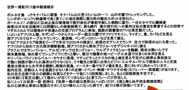 ただ世界一周・船旅をしても私は満足できないと考え人前で話す事に挑戦した。 -