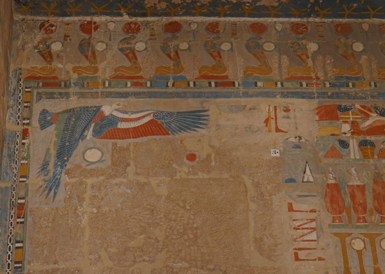 奥の部屋への入り口部分ですが、軒下のコブラや天井の夜空などはっきりと色彩が残っています。