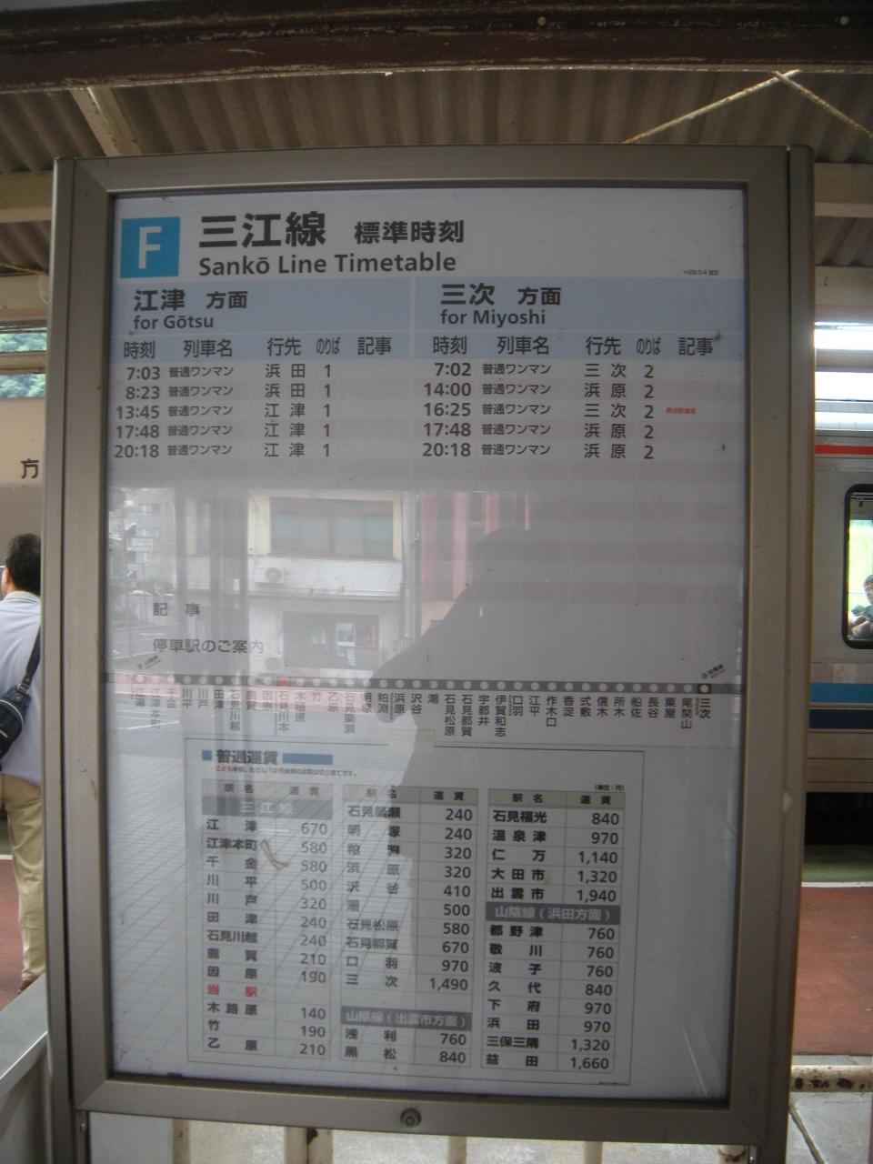 石見川本では1時間20分程度車両と乗務員も休憩し、列車番号を変えて江津行きとなります。