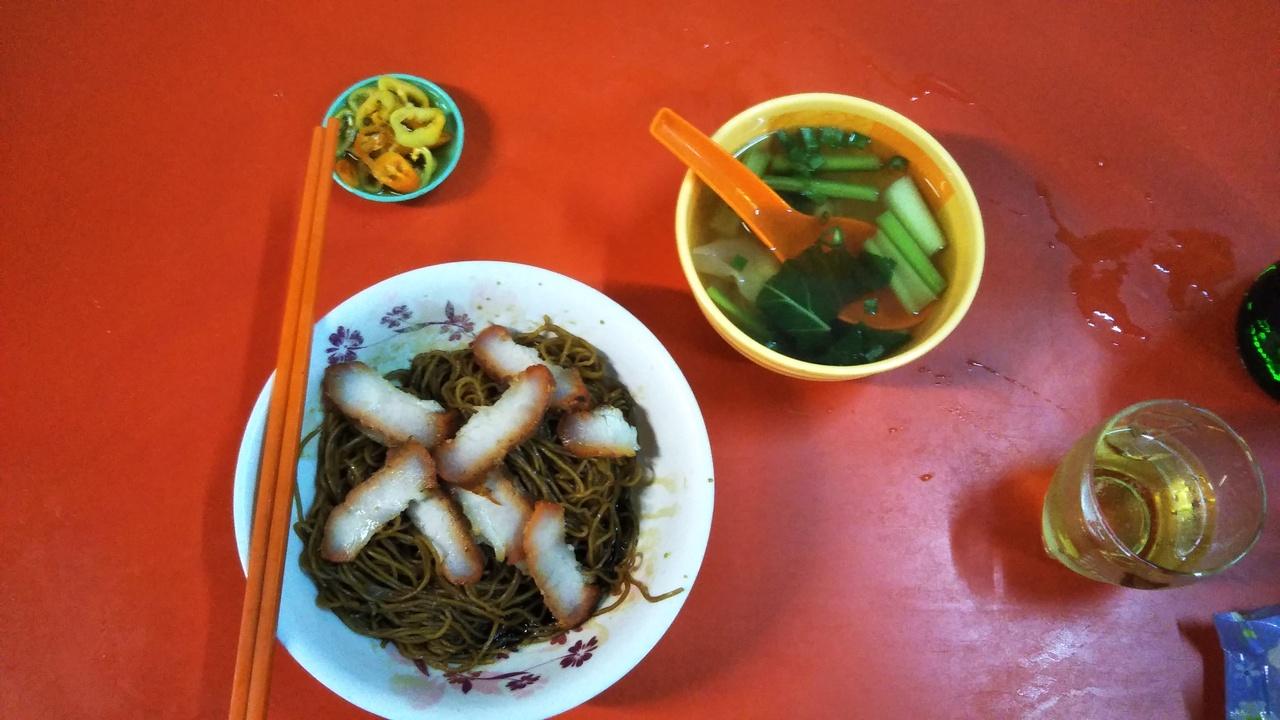 食べ物も、雲呑麺の代わりにチャーシューがのった真っ黒な焼きそばと小雲呑スープが来た。(雲呑麺の汁なしバージョンだが、こちらの方がマレーシアではポピュラーだった。) -